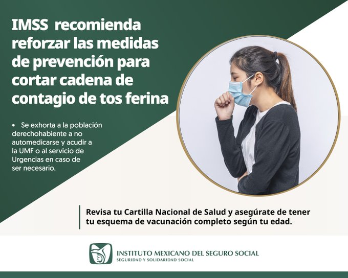 IMSS recomienda reforzar las medidas de prevención para cortar cadena de contagio de tos ferina