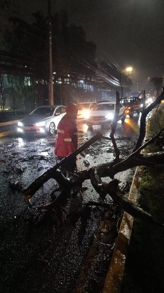 Encharcamientos, vehículos varados y caída de árboles, estragos provocados por el fenómeno pluvial en Tlalnepantla