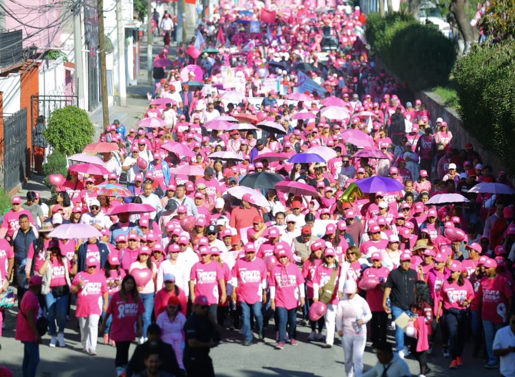 Con playeras y gorras color rosa, más de 3 mil mujeres y hombres participaron en la Caminata Estatal de Prevención del Cáncer de Mama en Ecatepec, a fin de visibilizar y concientizar a la población sobre este mal, principal causa de muerte entre los tumores malignos.