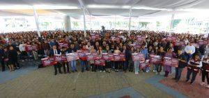 La entrega de tarjetas del citado programa se realizó en la explanada municipal y fue atestiguada por directivos de instituciones de educación superior que tienen sede en Ecatepec.