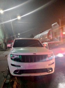 Al efectuar patrullajes preventivos para inhibir el delito de robo de vehículos, uniformados de la Secretaría de Seguridad Pública del Estado de México observaron una camioneta marca Jeep, tipo Grand Cherokee, de color blanco, con vidrios polarizados y sin placas de circulación, por lo que como medida preventiva pidieron a sus tripulantes detener la marcha; dicha indicación fue omitida y el conductor aceleró, lo que dio inicio a una persecución que culminó sobre la Avenida Nacional, esquina con Avenida de las Torres, de la colonia Santa María Chiconautla.