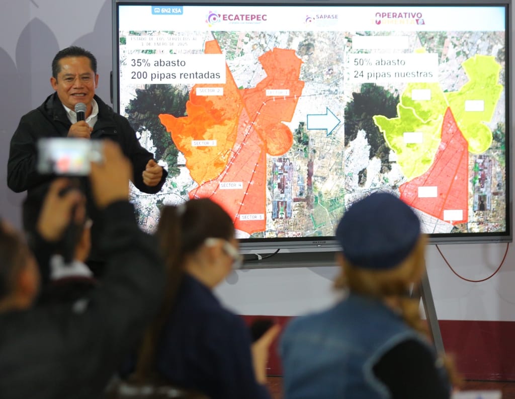 Staff Ecatepec, Estado de México, a 6 de octubre de 2025 El suministro de agua potable por la red en Ecatepec pasó de 35 por ciento al inicio de la actual administración a 50 por ciento actualmente, debido a diversas acciones y la inversión de 700 millones de pesos en materia hídrica de recursos federales,