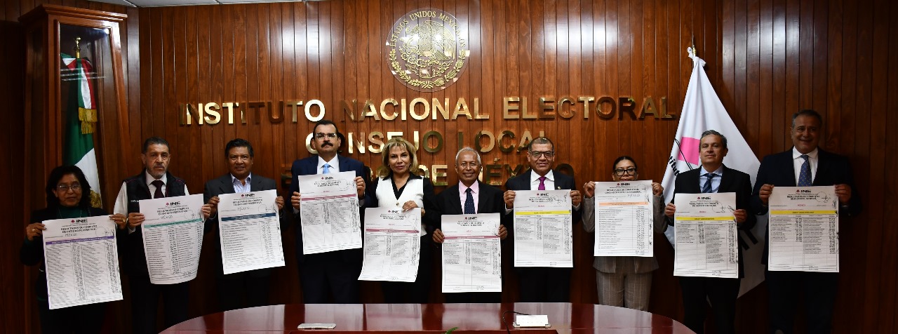 En el marco del Proceso Electoral Extraordinario del Poder Judicial de la Federación 2024-2025, este 12 de junio se celebró la sesión extraordinaria de Consejo Local del INE Estado de México, presidida por el Consejero Presidente, Joaquín Rubio Sánchez, en la cual se dio lectura a las actas finales de los cómputos de entidad federativa a partir de la captura obtenida en los 40 Consejos Distritales de la delegación mexiquense correspondiente a las siguientes elecciones:
