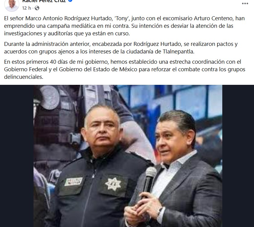 Dedicado a hacer propaganda política para favorecer al movimiento de la 4T y no a gobernar Tlalnepantla de acuerdo a sus publicaciones en su cuenta personal y escases de actividades en la página oficial del Ayuntamiento, Raciel Pérez encendió su odio contra el ex edil Marco Antonio «Tony» Rodríguez, a quien acusó de tener vínculos con el crimen organizado