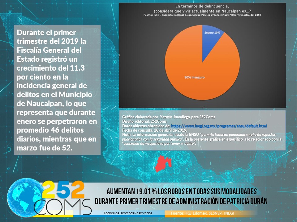 El conteo de delitos y los datos de expectativa y percepción ciudadana de la seguridad en Naucalpan, así como de otros municipio mexiquenses, se estarán detallando y comparando en próximas publicaciones de 252Coms.