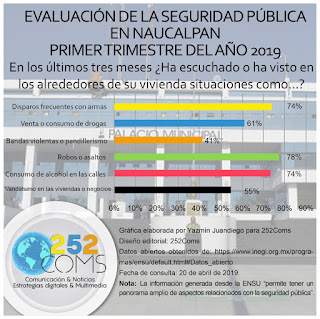 La Encuesta Nacional de Seguridad Pública Urbana (ENSU), realizada por el INEGI, precisó que ante el cuestionamiento “En los últimos tres meses ¿Ha escuchado o ha visto en los alrededores de su vivienda situaciones como?”: el 78 por ciento fue “Robos o Asaltos”, el 74 por ciento fue de “Disparos frecuentes con armas”.
