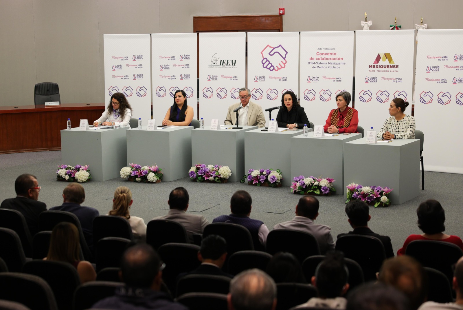 En el acto protocolario estuvieron presentes las Consejeras Electorales del IEEM Paula Melgarejo Salgado; Patricia Lozano Sanabria; Karina Ivonne Vaquera Montoya y Sayonara Flores Palacios, así como Directivos de diversas áreas del IEEM, servidoras y servidores públicos electorales y titulares del SMMP.