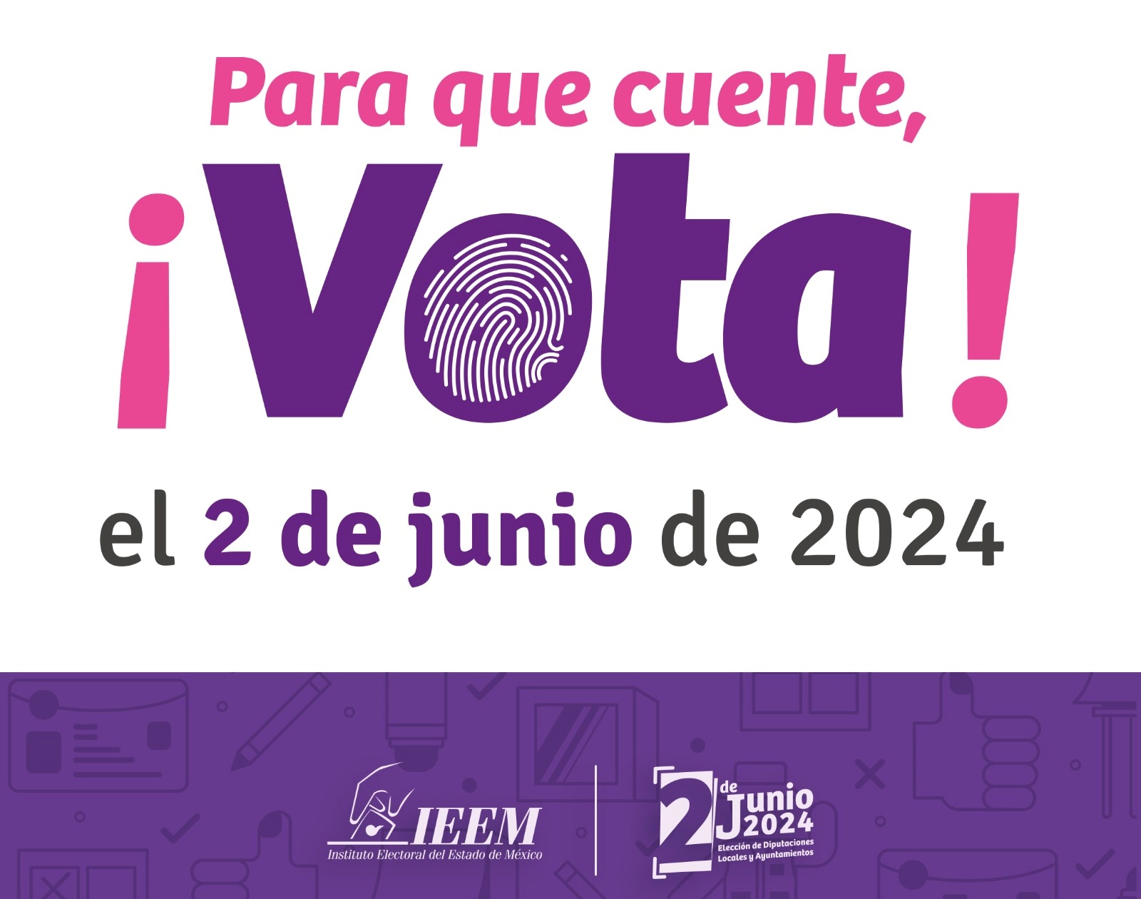 El Instituto Electoral del Estado de México (IEEM) invita a la ciudadanía a ejercer su derecho al voto este domingo 2 de junio, día en que se elegirán Diputaciones Locales y Ayuntamientos en el Estado de México.