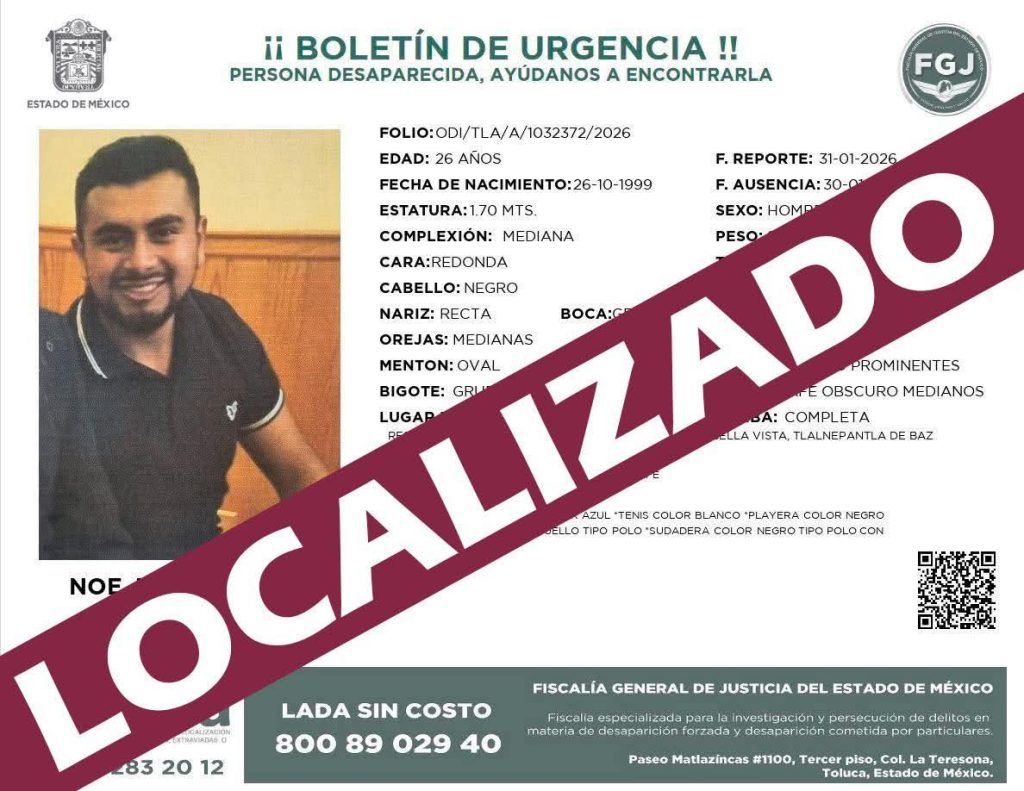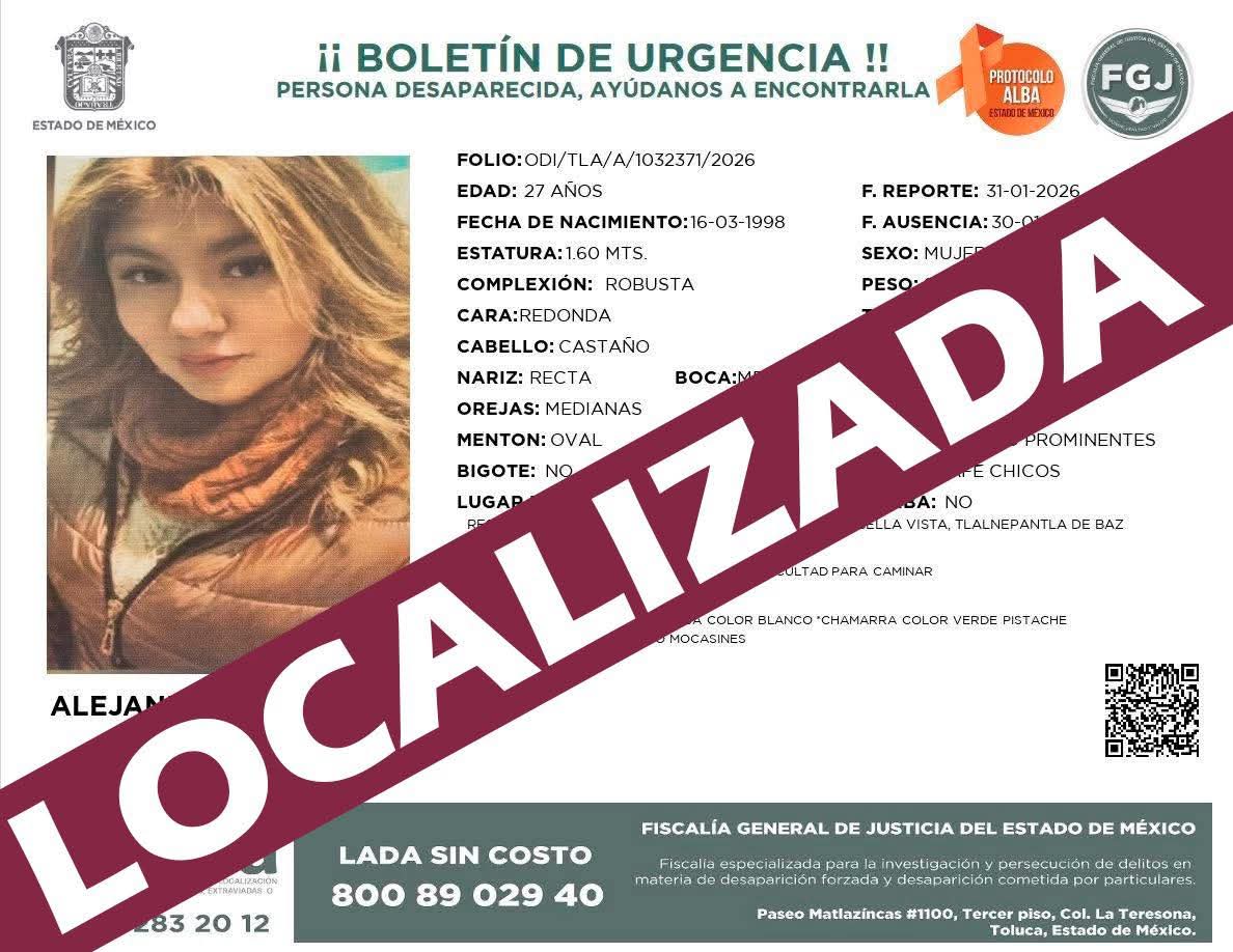 Tras una intensa búsqueda, autoridades municipales confirmaron la localización con vida de Alejandra Rojas Báez, vecina de Jilotzingo y de su primo Noé Jacob Pérez Rojas, quienes habían sido reportados como extraviados luego de ser vistos por última vez en un bar de Satélite, en el municipio de Naucalpan.