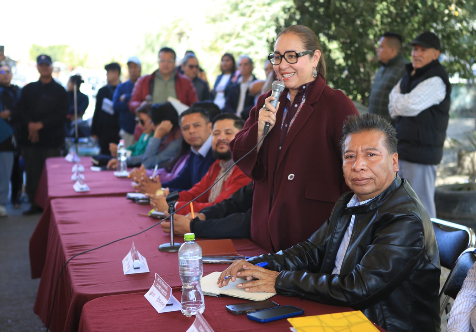Previo a las audiencias, sostuvo la Mesa de Seguridad en la Macro Plaza, donde acudieron representantes de la FGJEM, Guardia Nacional, policía estatal y municipal, a quienes demandó dar respuesta a la población e informó que su gobierno se enfocará en la prevención del delito con luminarias, alarmas y cámaras para que los vecinos se sientan más seguros.