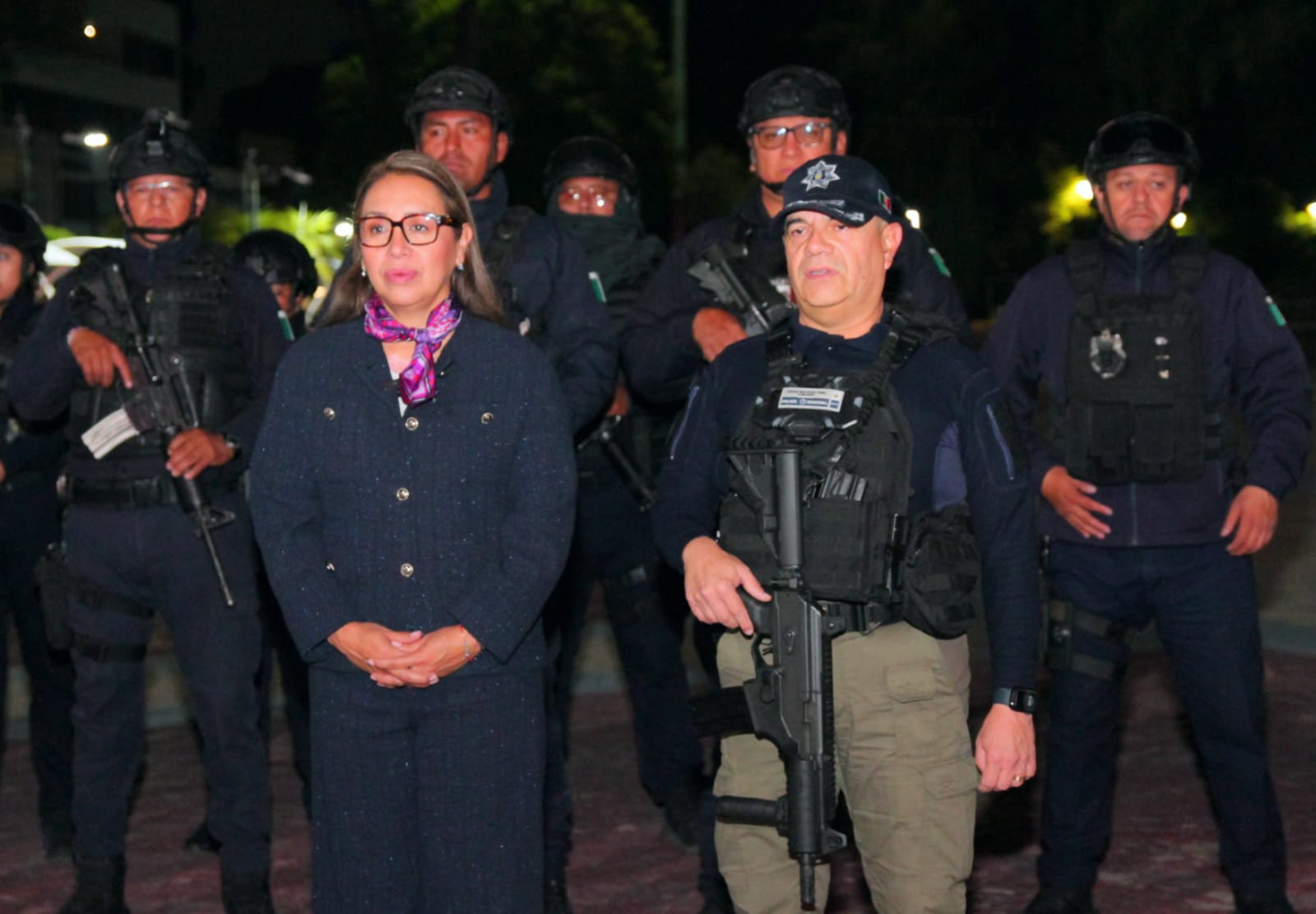 Los convoys partieron de la explanada municipal con agrupamientos: sectores, moto patrullas, Grupo de Operaciones Especiales, Policía Metropolitana, Tránsito y Policía de Género; Fuerza de Tarea Marina; Guardia Nacional, Sedena y policía estatal.