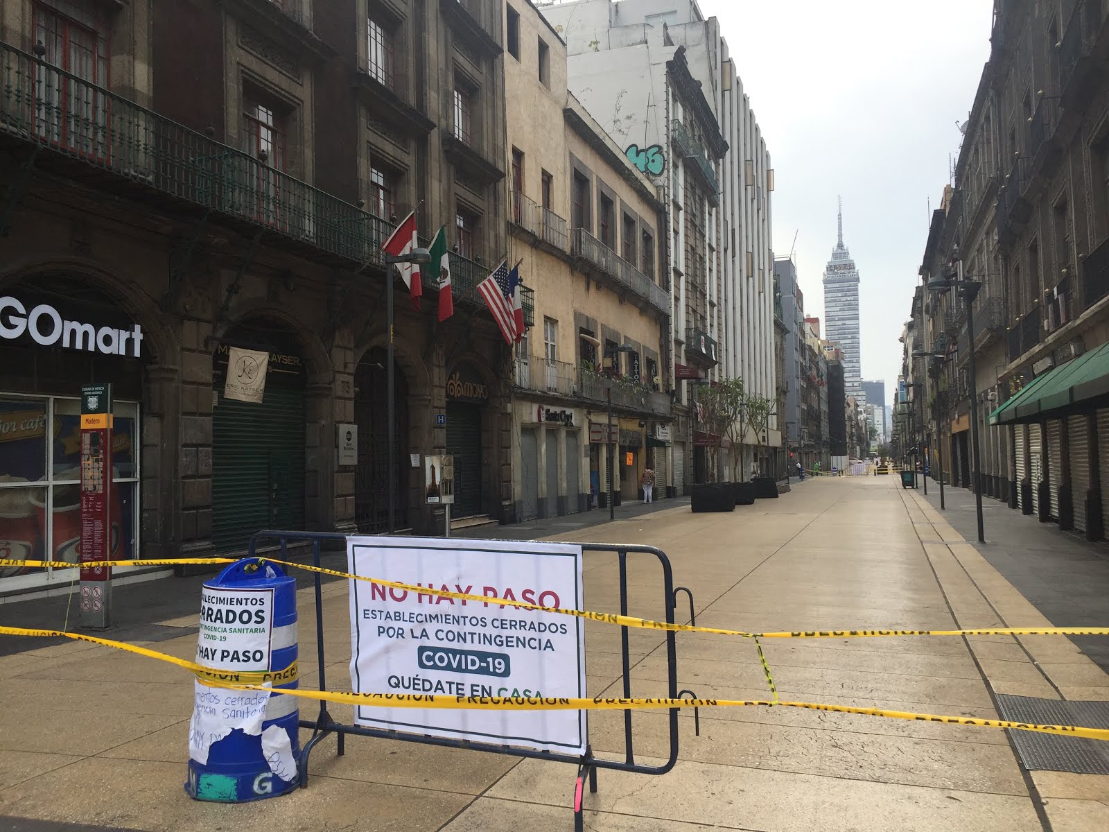 La calle peatonal de Francisco I. Madero, que nunca duerme al ser uno de los principales corredores comerciales y turísticos que van desde Eje Central hasta la plancha del Zócalo, ya está cerrada, delimitada por vallas metálicas y cercada por policías para restringir su paso.