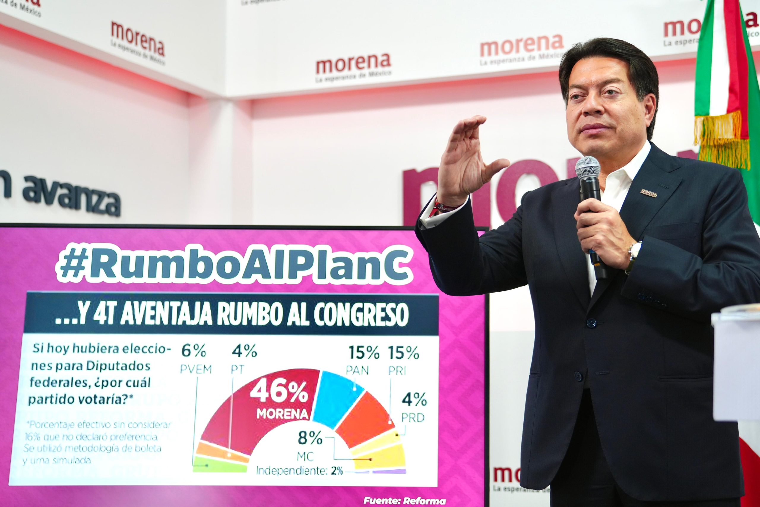 De acuerdo con varias encuestas, las preferencias de los partidos de la coalición se acercan a una ventaja de entre 20 y 30 puntos, porcentajes necesarios para lograr el plan y obtener la mayoría calificada en el Congreso de la Unión.