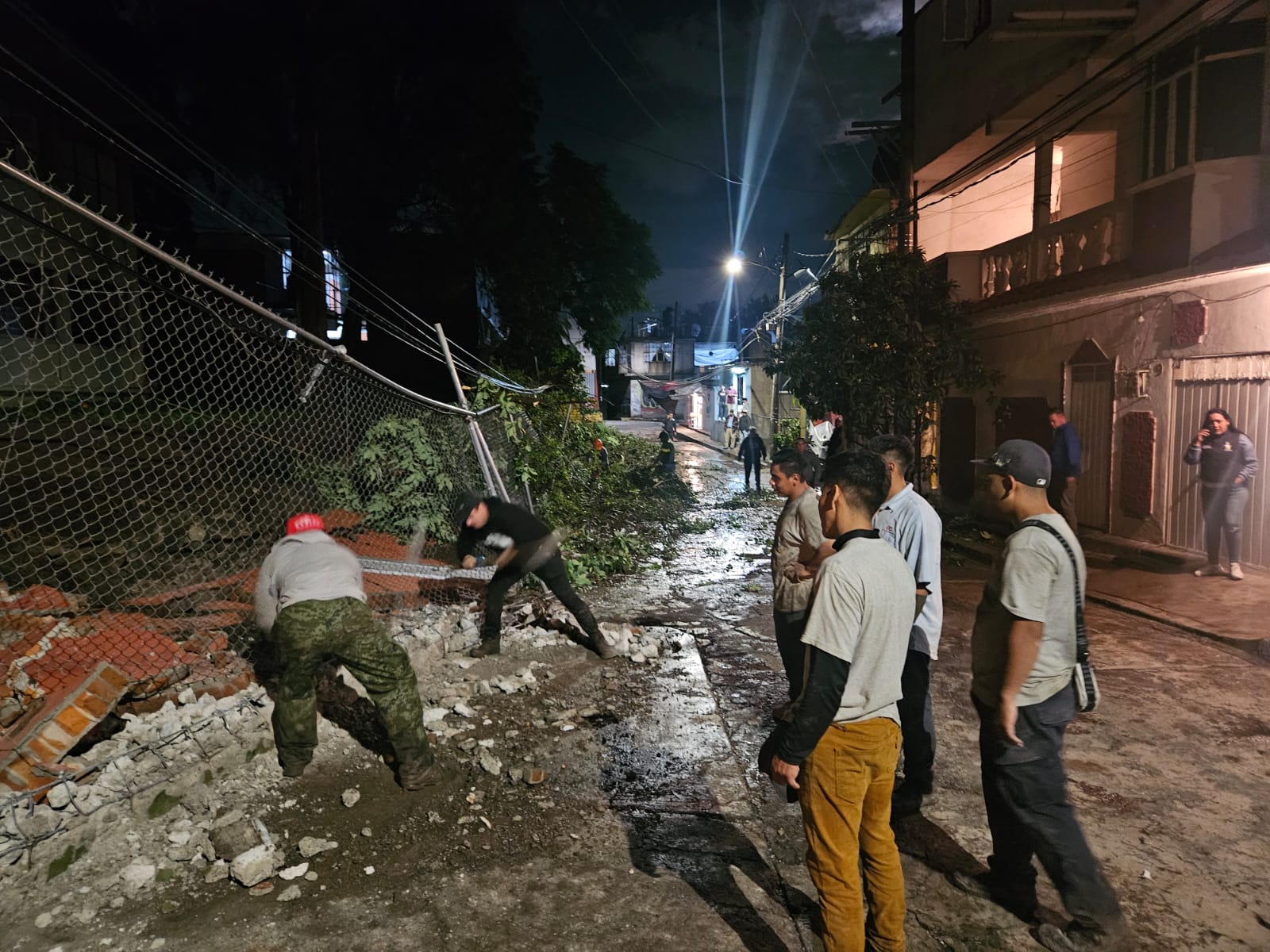 En esta última comunidad, la caída de una barda de 30 metros de largo y 3 metros de alto de un jardín de niños derribó a su vez cuatro árboles, que ya fueron seccionados.