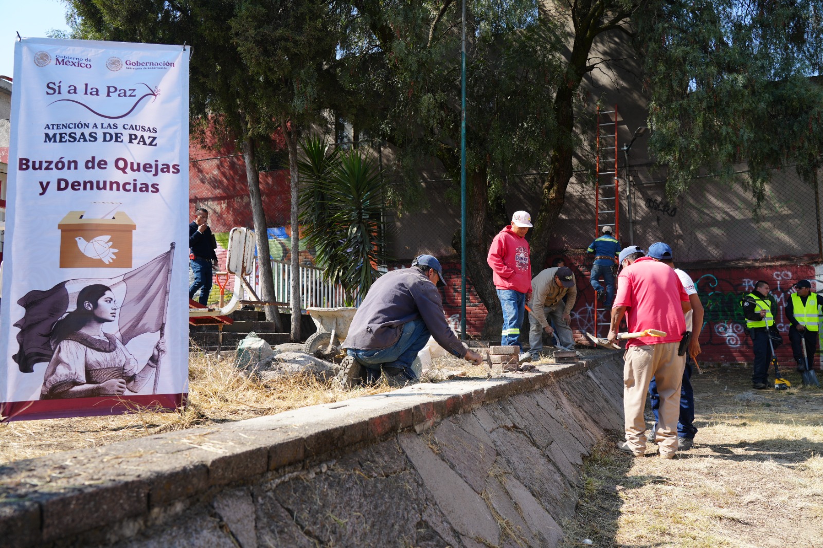 Para asegurar la efectividad de estos trabajos, se contó con el acompañamiento estratégico de la SEDENA en labores de seguridad perimetral y labor social, se desplegó un estado de fuerza especializado compuesto por elementos de la Comisaría General de Proximidad y Seguridad Ciudadana; así como de la Subdirección de Prevención del Delito y Estrategias de Paz.