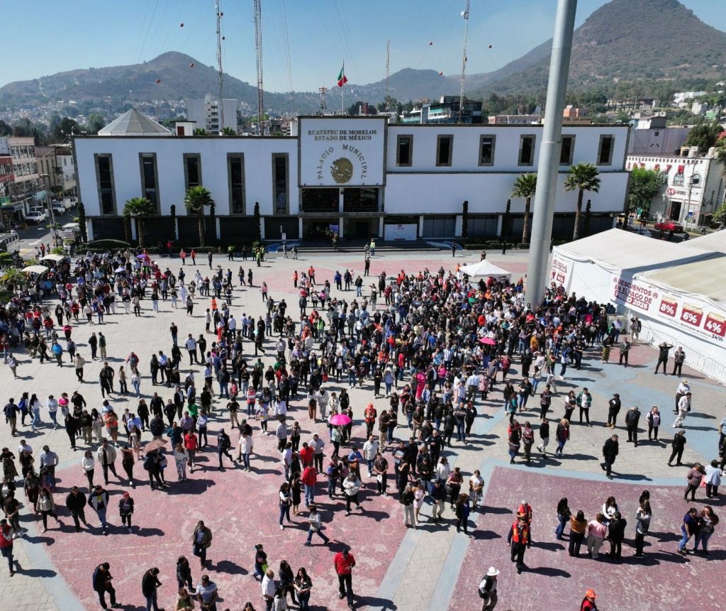A las 11:00 horas en punto sonaron las 130 alertas sísmicas municipales y los altavoces del C5 del gobierno estatal, así como el sistema a través de telefonía celular, por lo que en la explanada municipal de Ecatepec, se concentraron cerca de dos mil servidores públicos, así como personal de comercios y bancos aledaños y población en general.