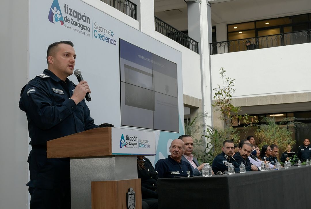 El Presidente Pedro Rodríguez Villegas encabezó el evento de despedida al Teniente de Navío de la Secretaría de Marina (SEMAR), Fabián Gómez Calcáneo, quien durante cuatro años encabezó la Dirección de Seguridad Pública y Seguridad Vial de Atizapán de Zaragoza, dejando al municipio como el más seguro del Estado de México y como referente a nivel nacional en esta materia.