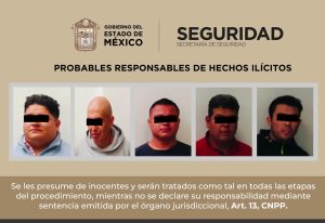 Elementos de la Secretaría de Seguridad del Estado de México (SSEM), detuvieron a cinco personas y resguardaron un predio, donde se localizó un contenedor con mercancía valuada en aproximadamente 48 millones de pesos.