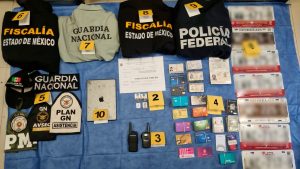 Durante esta acción operativa también fueron aseguradas placas de circulación, equipos de radiocomunicación, una caja con diversas identificaciones oficiales , insignias de la Guardia Nacional, DEFENSA, policía ministerial y Fiscalía General de Justicia de la CDMX, así como diversas prendas con logotipos de la Fiscalía, Guardia Nacional y de la Policía Federal.
