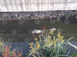 Cuautitlán México a 27 de mayo del 2019 .- Esta tarde fue hallado el cuerpo de un hombre que se encontraba flotando sobre un canal de aguas negras en la colonia El terremoto, en Cuautitlán México.