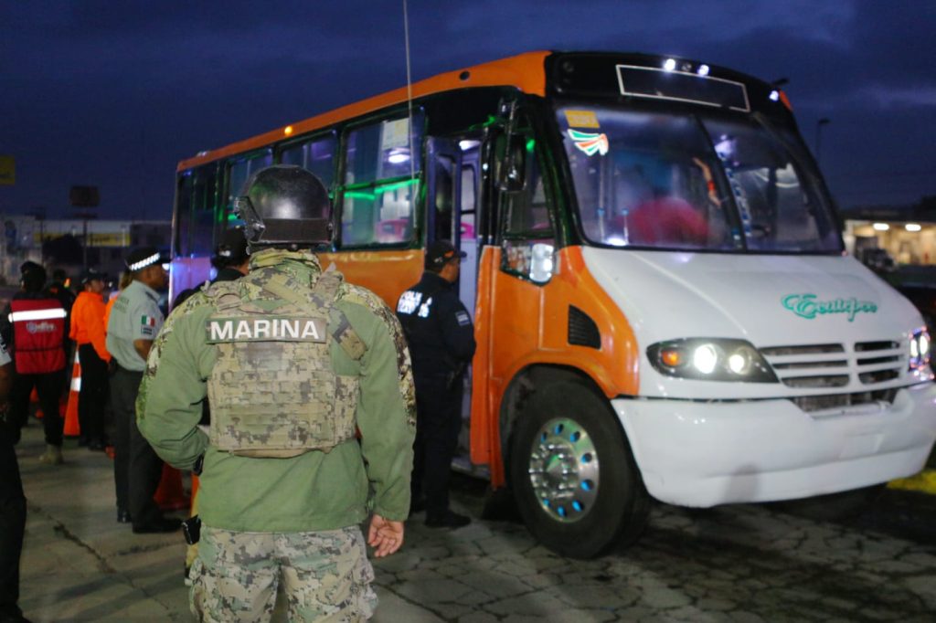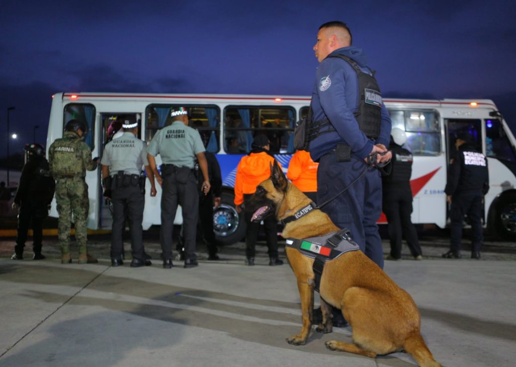 Simultáneamente, en 11 puntos estratégicos del municipio, se realizan los Operativos de Transporte Seguro, en dos turnos, matutino y vespertino, con la participación de Marina, Guardia Nacional, Policía de Tránsito Municipal, Agrupamientos Especiales que consisten en los Binomios Caninos y la Policía Metropolitana, así como la Célula de Género de la Policía Municipal”, explicó.