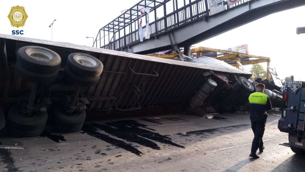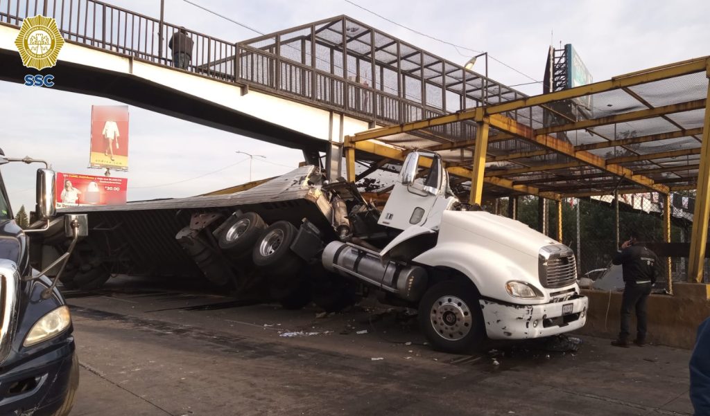 Tractocamión derriba puente peatonal y afecta servicio del metro