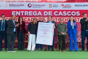 Los gobierno federal y del Estado de México entregaron en Ecatepec mil cascos certificados a colectivos de motociclistas y repartidores por aplicación.