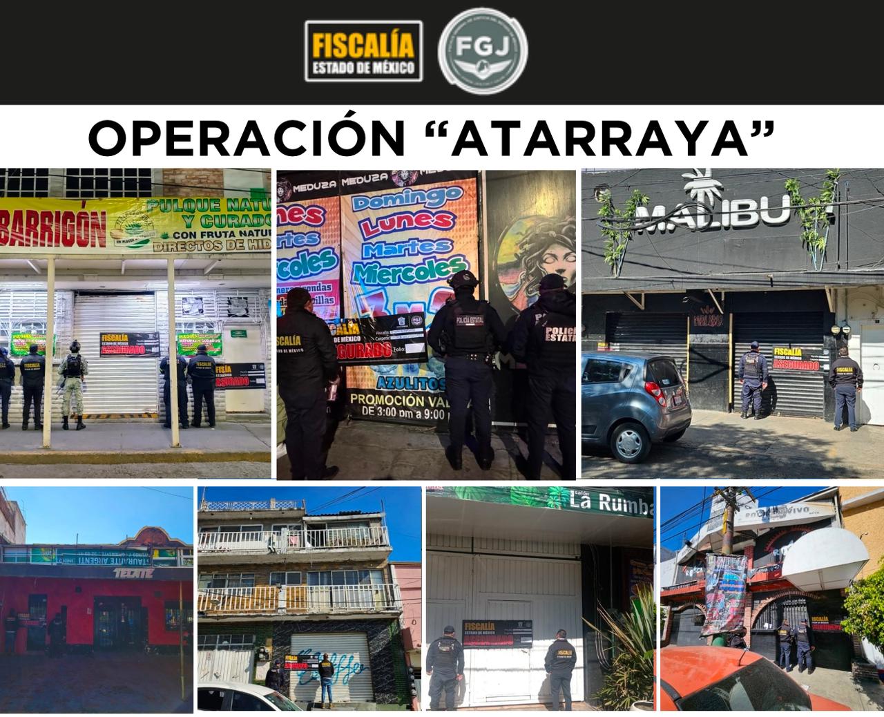 Este fin de semana el Operativo “Atarraya” volvió a desplegarse en Naucalpan y Tlanepantla para cerrar 7 establecimientos mediante técnicas de investigación de cateo, inspecciones y revisiones cuyo funcionamiento está relacionado con delitos como extorsión, homicidio y trata de personas, entre otros.